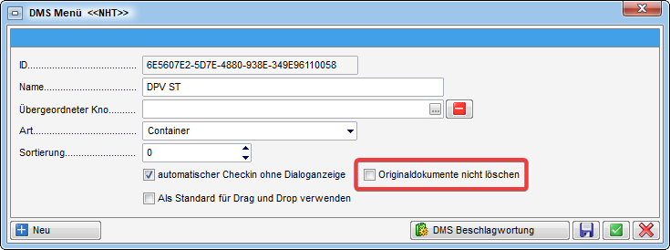 Benötigt Berechtigung des DMS Systems DMS Administrator (1300).