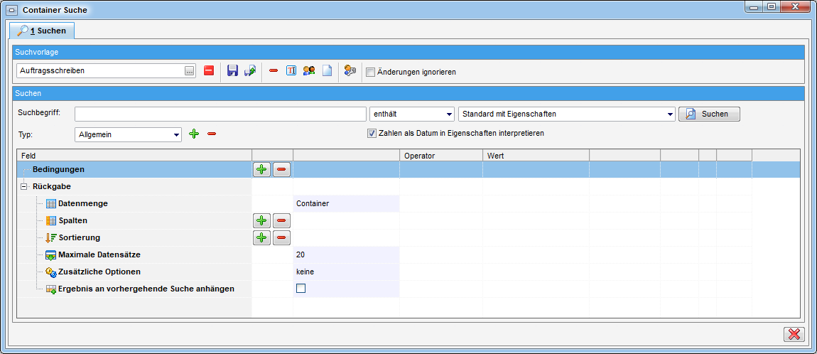Gibt es aufgrund des Suchbegriffes nur einen gefundenen Datensatz, wird der Container automatisch nur mit diesem verknüpft.
