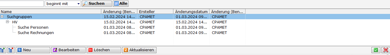 Suchen: damit starten Sie eine Suche nach Dokumenten im DMS (siehe Dokumente wieder finden - die Suche) und
