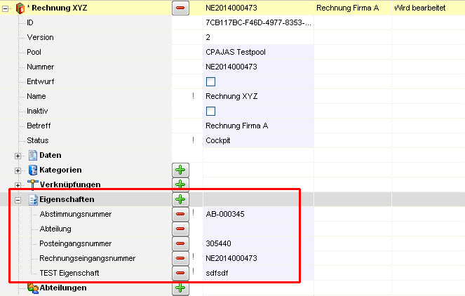 Um eine Eigenschaft wieder zu entfernen, klicken Sie auf das rote Minus