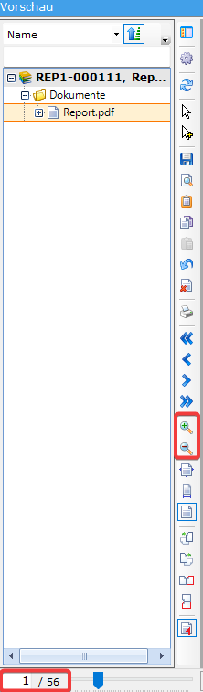 In diesem Bereich wird das aktuell markierte Dokument als Vorschau angezeigt. Dazu müssen Sie unten rechts im Vorschaubereich die Art der Vorschau in einer Auswahlbox wählen:
