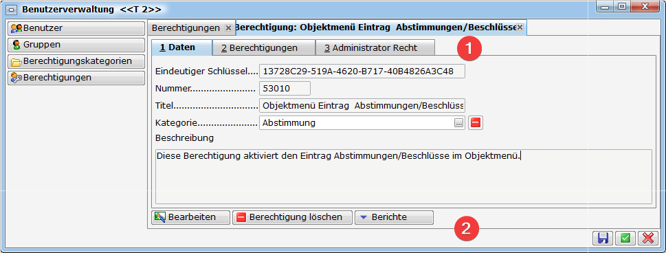 Berechtigungsdetails 1. Registerlasche Daten