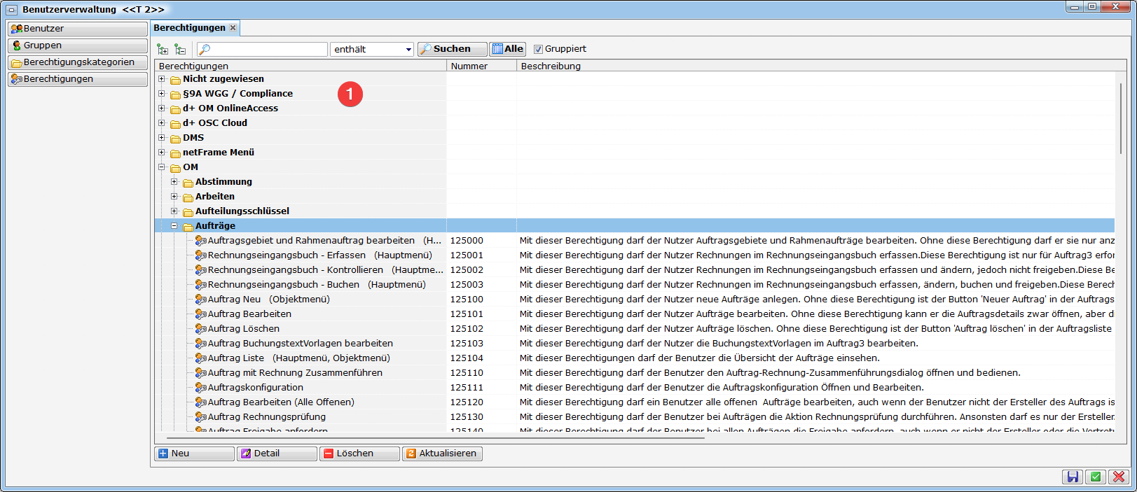 Nummer: Über dieses Feld kann der Berechtigung eine beliebige Nummer zugewiesen werden.