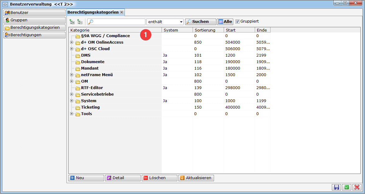 In diesem Bereich wird abgeraten selbstständig neue Berechtigungskategorien zu erstellen.