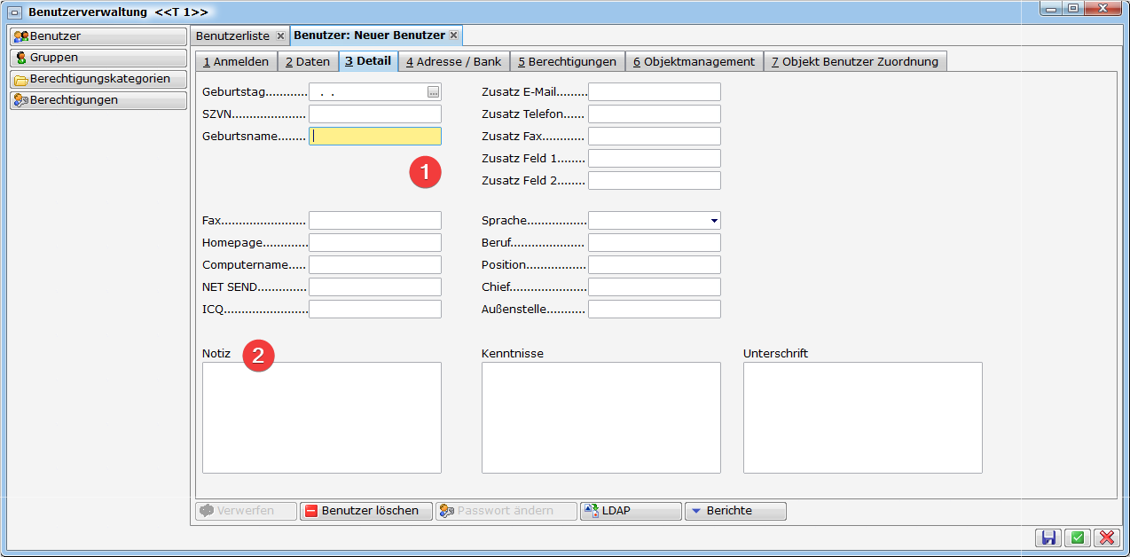 Der Benutzer-Detaildialog ist folgendermaßen aufgebaut: