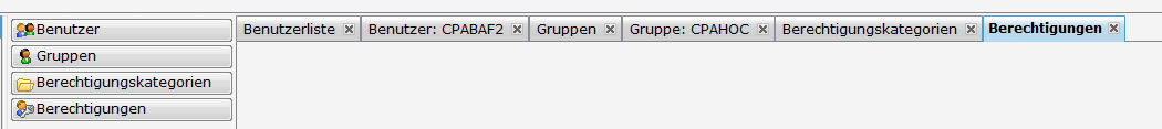 In diesem Bereich sehen Sie nach Öffnen einer bestehenden Berechtigung oder mit Klick auf Neu die vorhandene Berechtigungen-Registerleiste.
