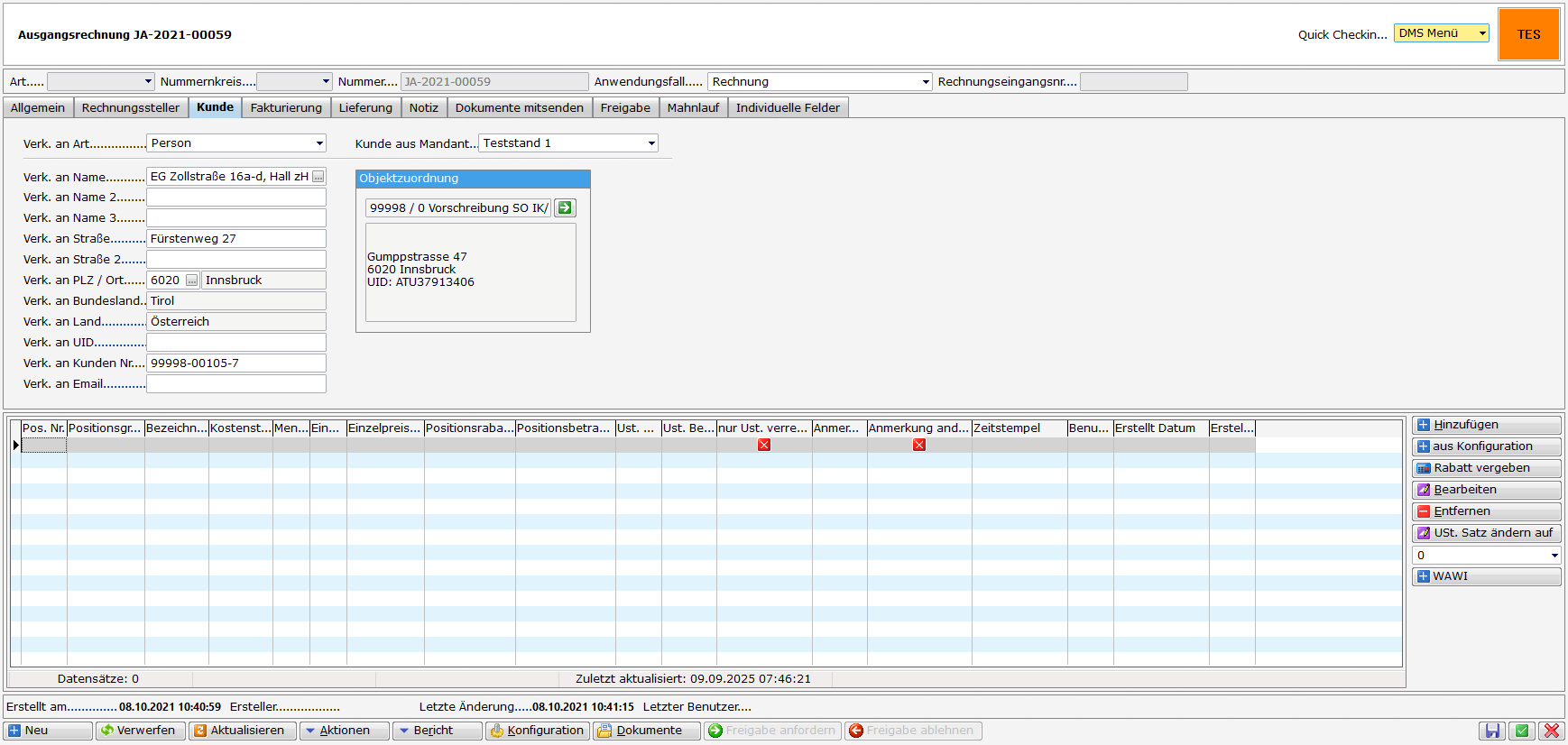 Rechnungspositionen (siehe Rechnungsposition erfassen). Je nachdem, ob