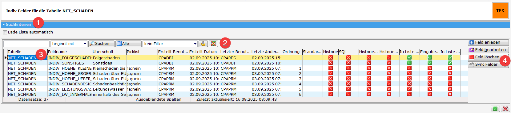 Für mehr Übersicht können Sie aber auch eine Suche und einen Filter nutzen. Außerdem können Sie die Positionen der Spalten benutzerdefiniert anpassen. Wenn der Schadensdialog nur einmal geöffnet ist, werden die hier durchgeführten Einstellungen auch bleibend gespeichert.