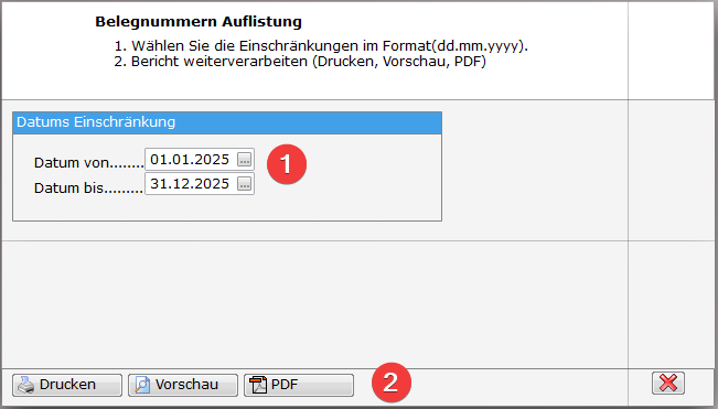 des richtigen Belegnummernkreises zusätzlich zum Objekt auch über das