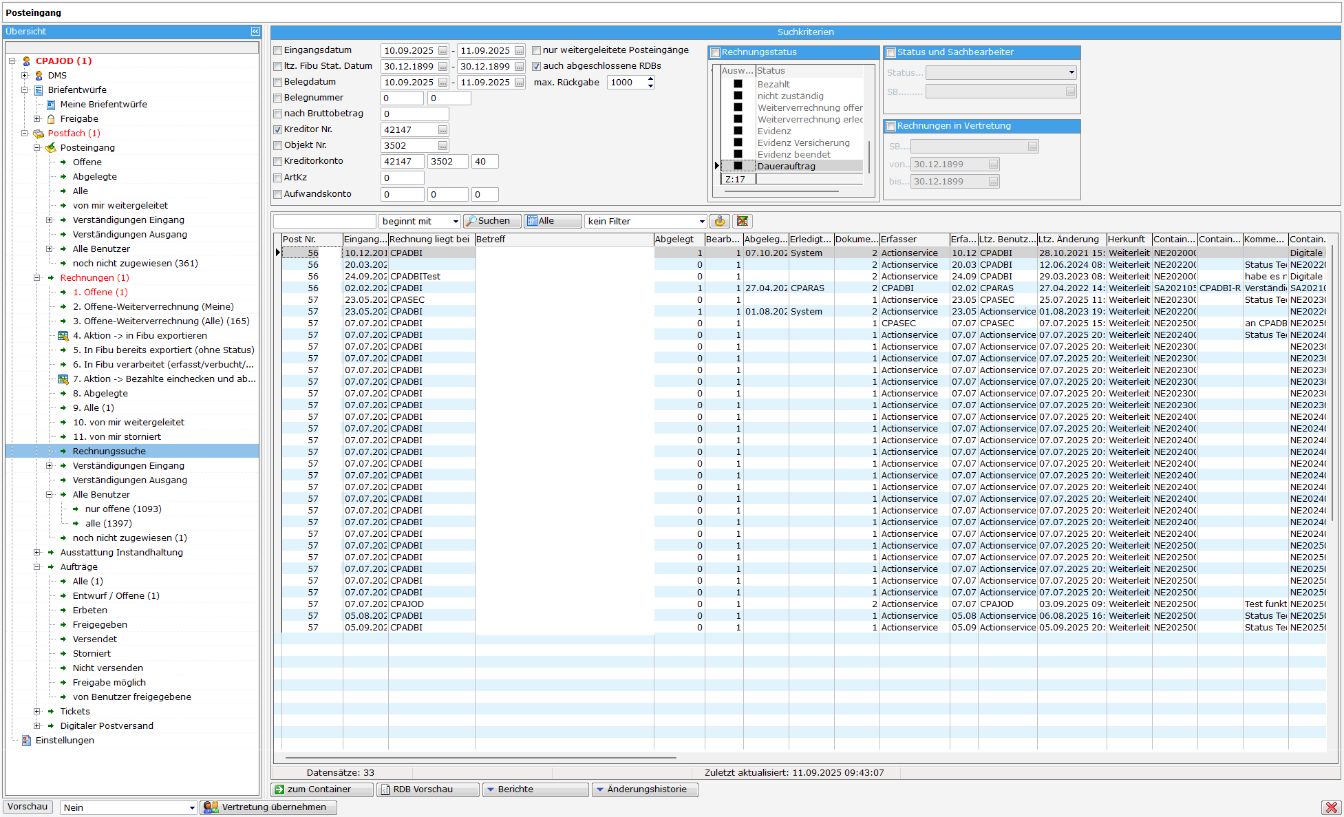 Menü: Rechnungen (es werden die „offene“ + „Verständigungen Eingang/nur