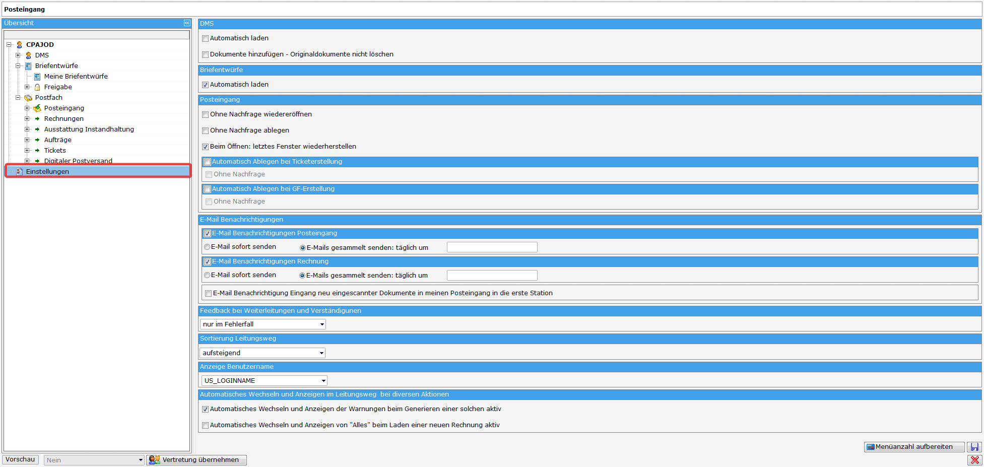 Posteingang, Rechnungen, Aufträge, Tickets, Digitaler Postversand)